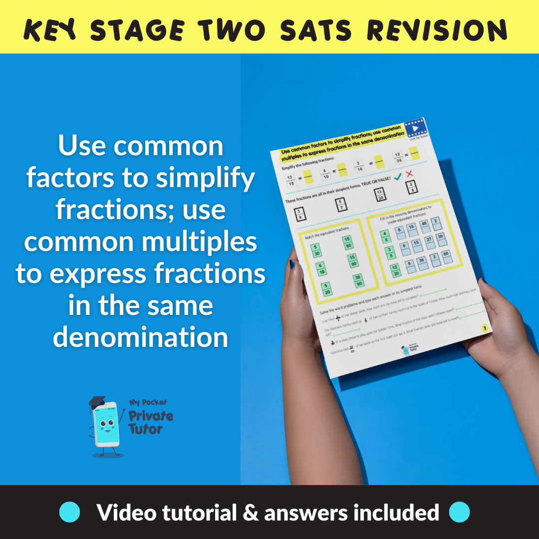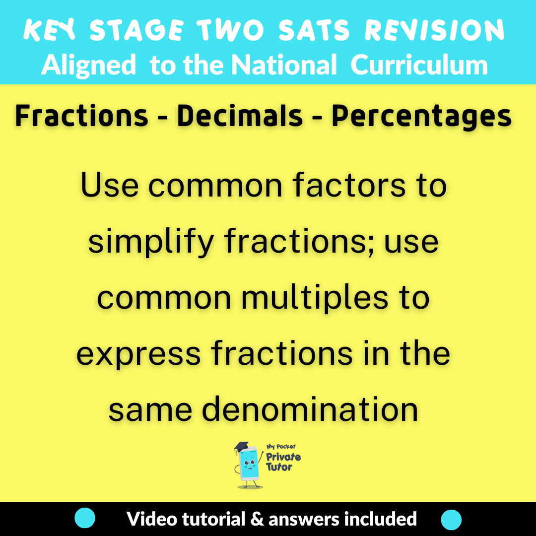 Also available as part of the Fractions, Decimals & Percentages Ebook which covers the complete Numbers: Fractions section with BONUS Past SATs Question examples: